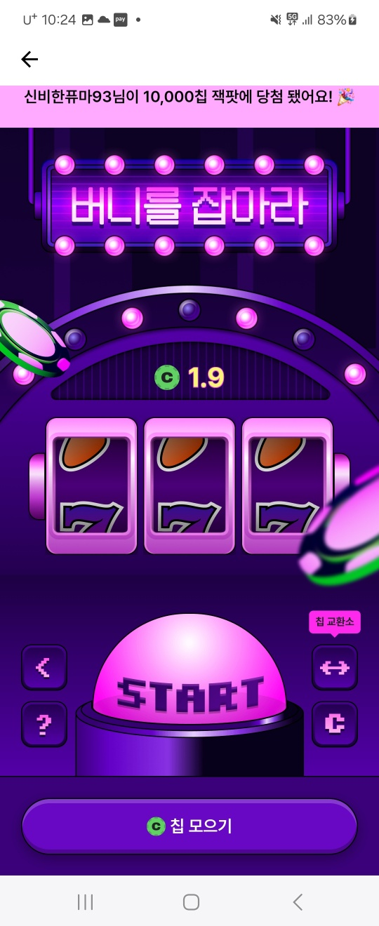 상단에 실시간으로 10,000 코인씩 당첨되는 사람들이 뜨는데 생각보다 잘뜨나봐요?