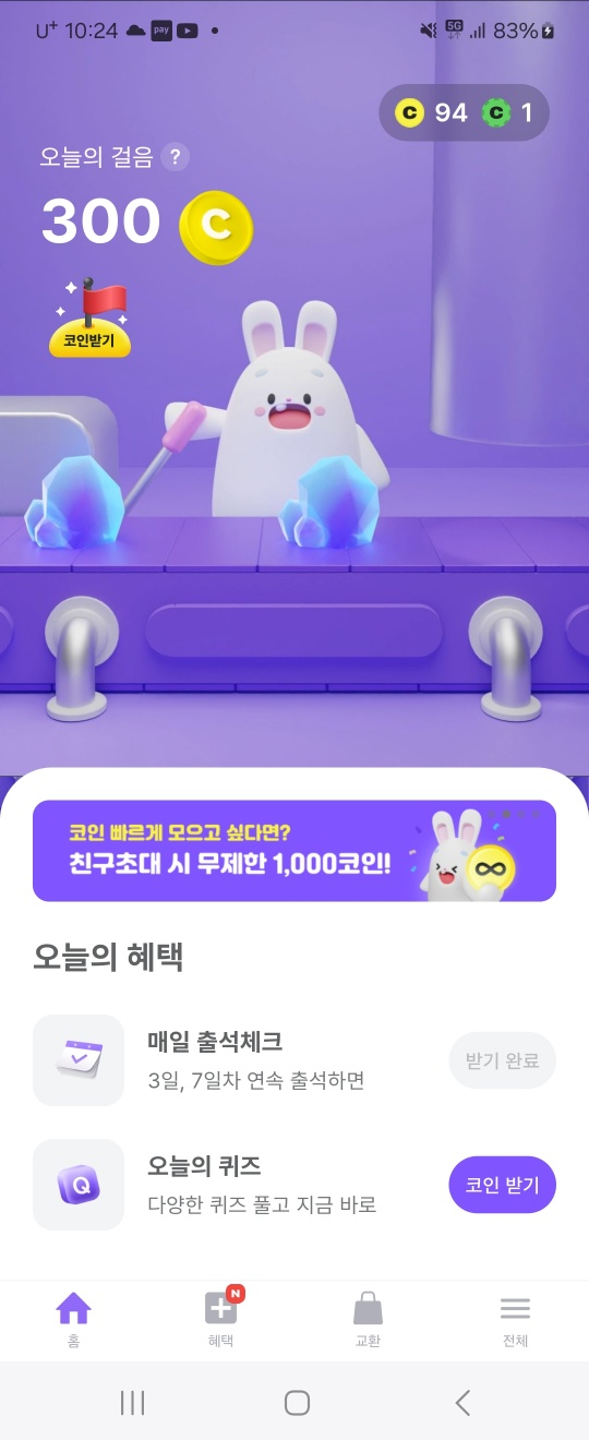 어떤 앱이든 다 그렇지만 친구초대하는게 사실 가장 크게 코인을 모으는 방법이에요.