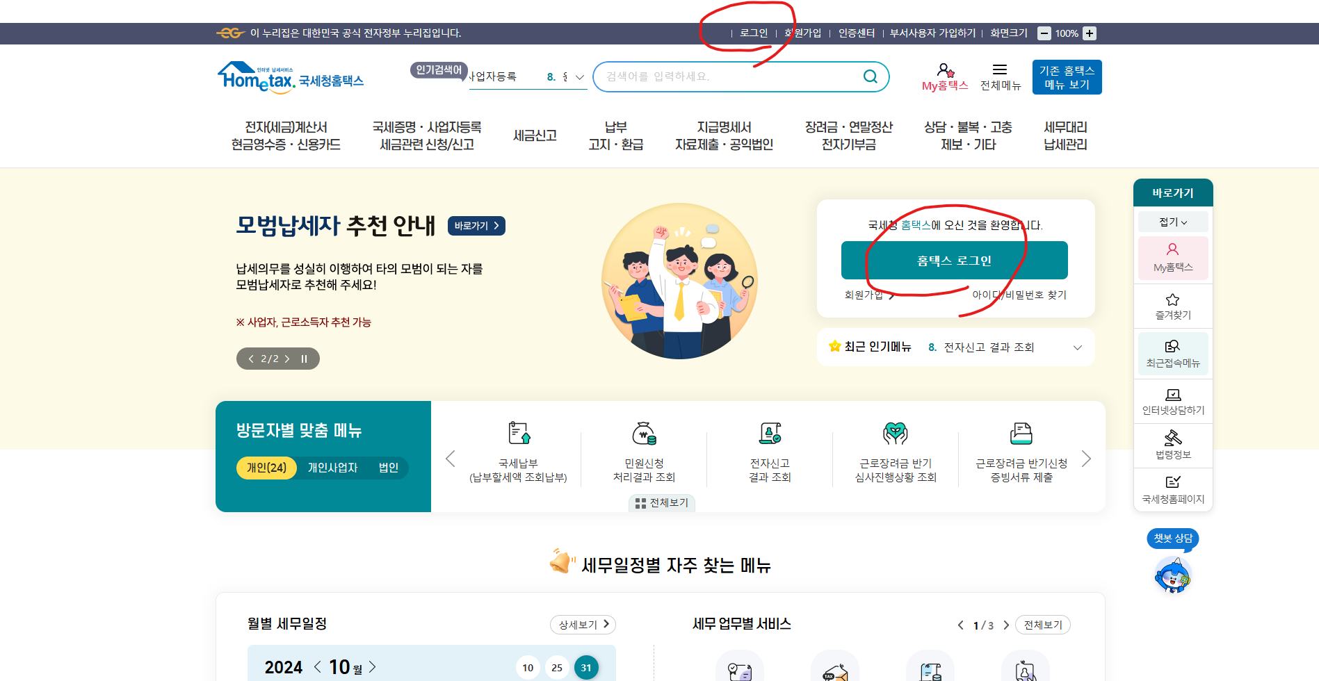 - 홈택스 로그인: 홈택스 홈페이지나 모바일 앱에 접속해 로그인합니다.