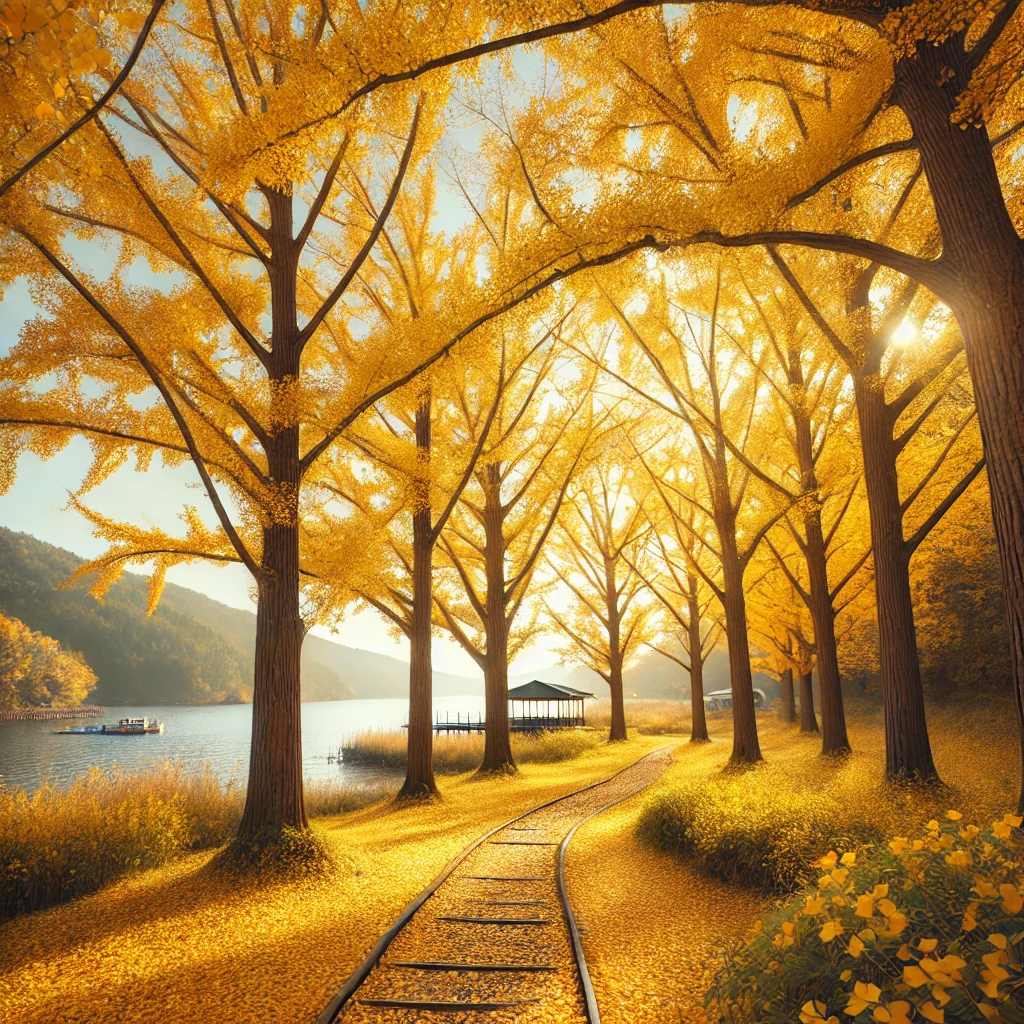 가을이 되면 강천섬에는 노란 은행나무가 절경을 이룹니다. 이 길을 따라 산책을 즐기며 사진을 찍으면 인생 사진을 남길 수 있습니다. 은행나무 숲을 지나 남한강이 보이는 길을 걷다 보면 자연 속에서 편안한 휴식을 만끽할 수 있습니다.