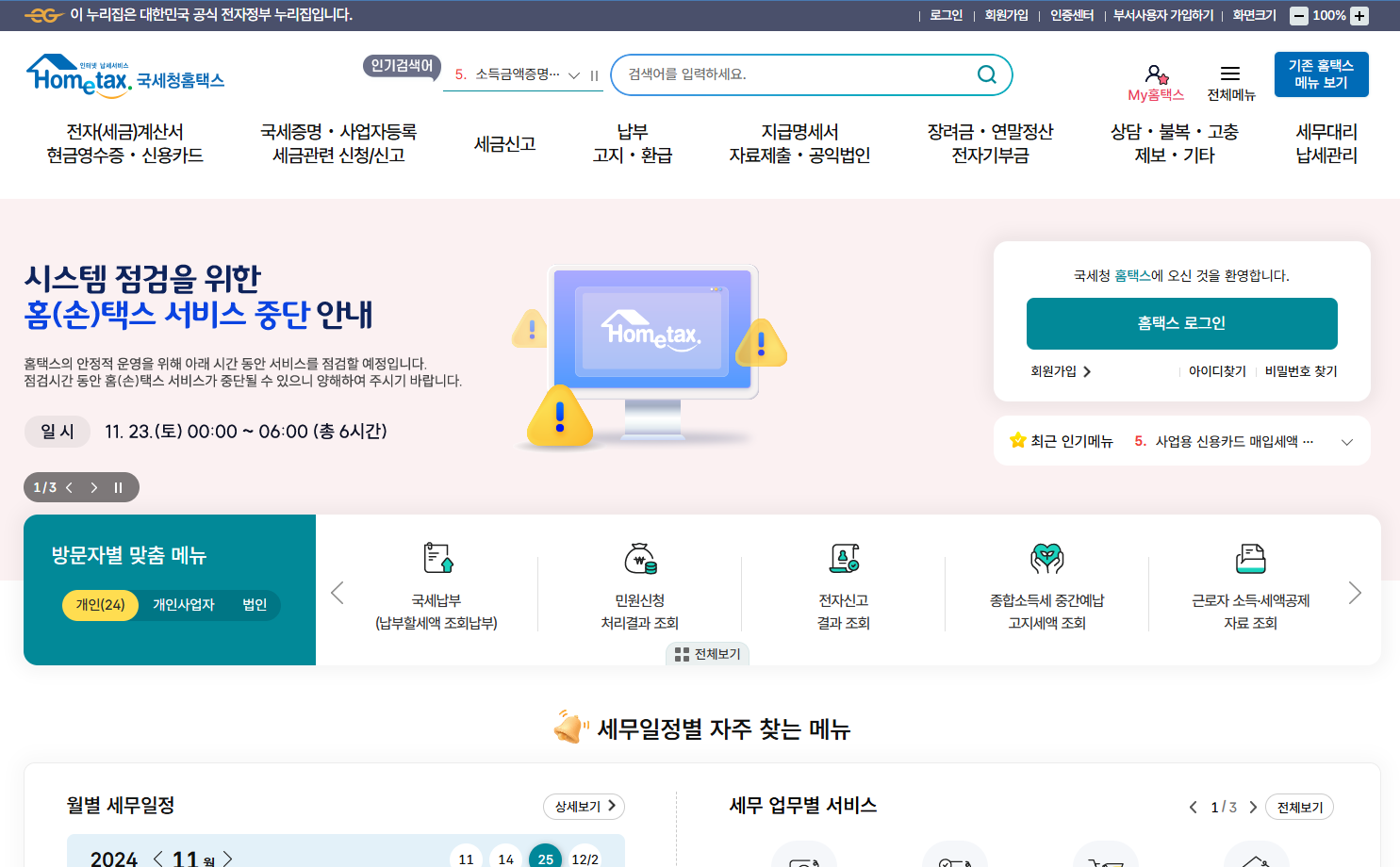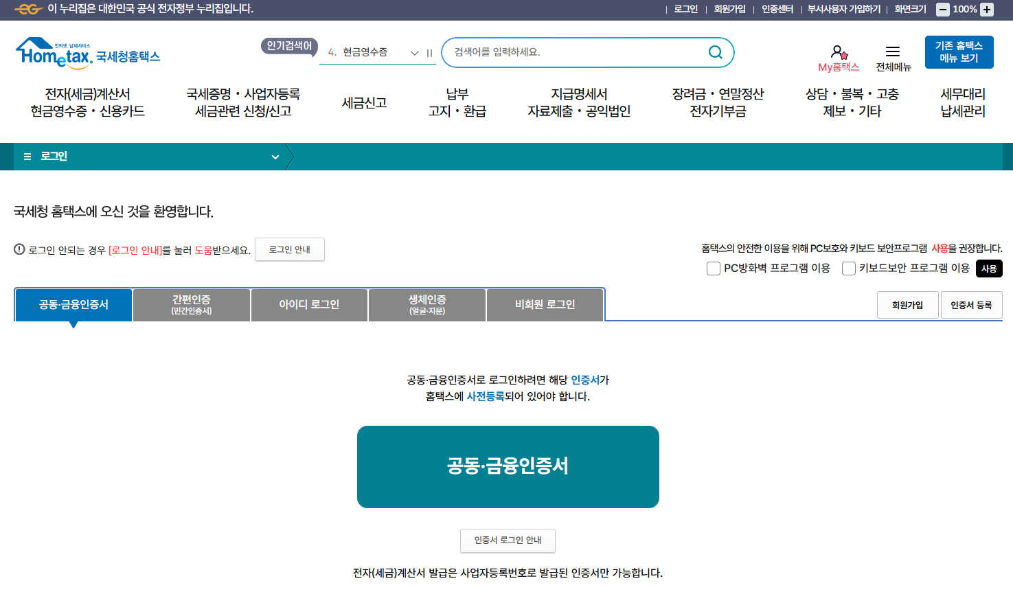 1. 국세청 홈택스 접속 : 국세청 홈택스 홈페이지에 접속합니다.