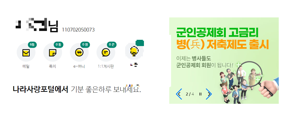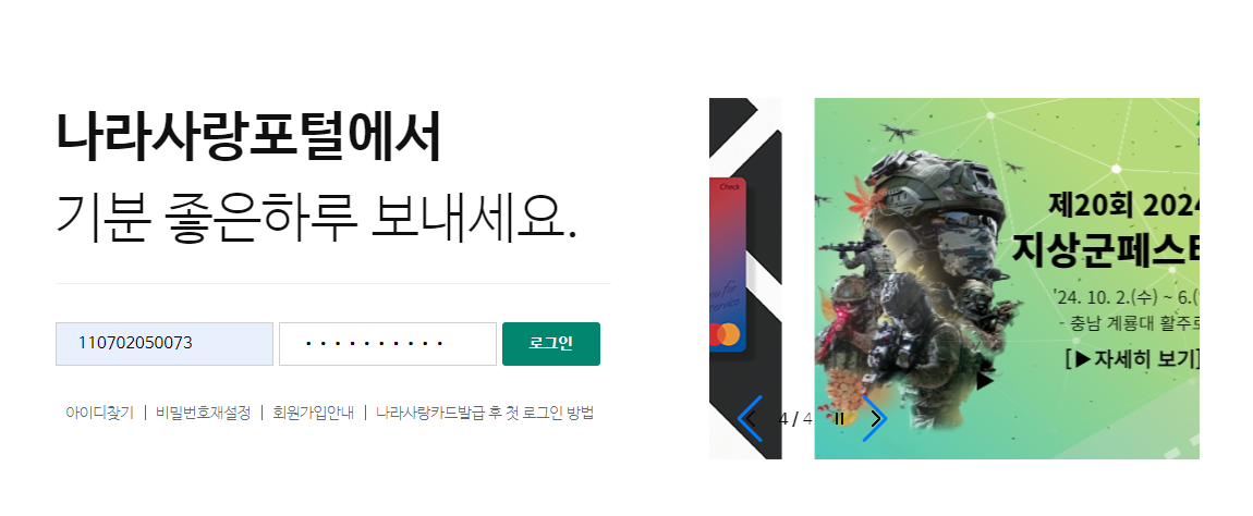 2. 나라사랑포털 사이트에 접속 후 아이디가 있으시면 로그인!