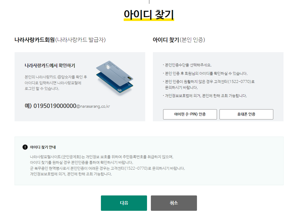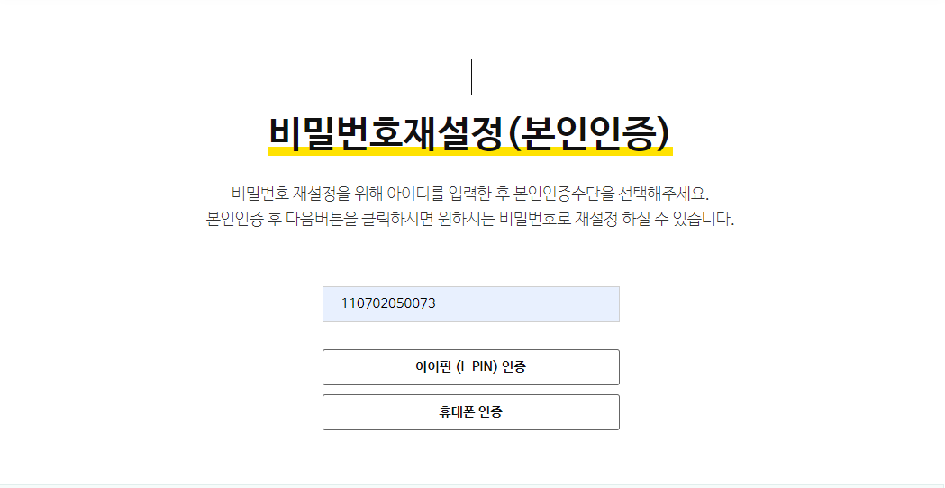 아이핀은 복잡복잡스러우니까 휴대폰 인증으로 빠르게 찾아봅시다.