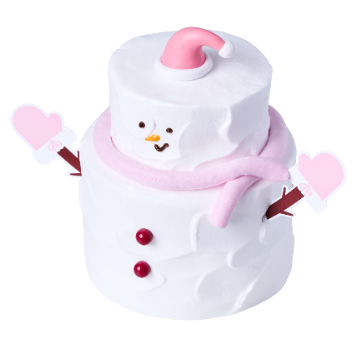 - 허그 미! 스노우맨: 딸기 크림과 우유 바닐라 크림이 조화를 이룬 귀여운 눈사람 케이크.